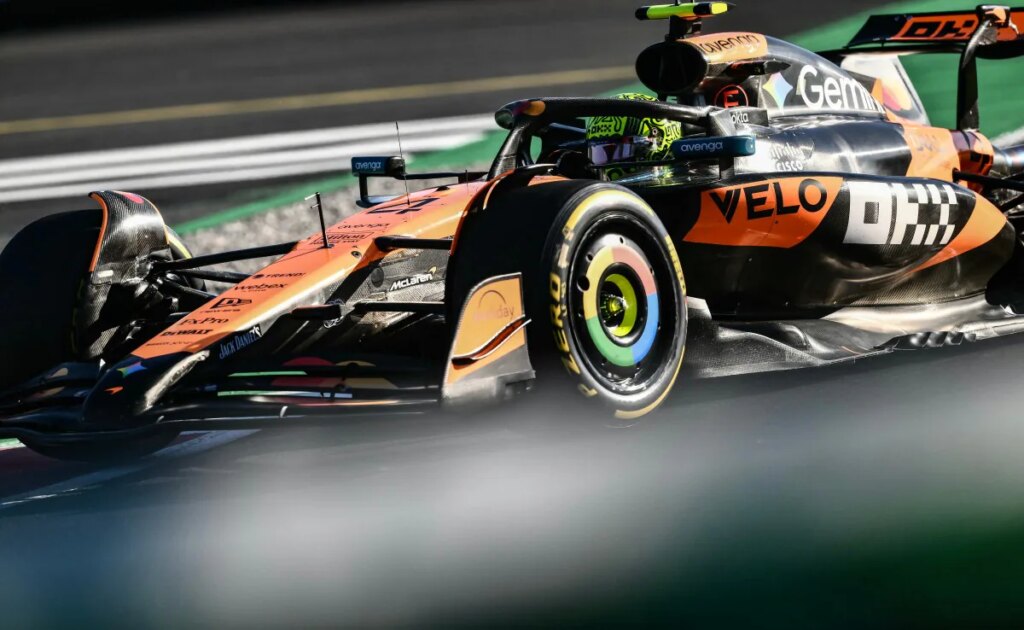 McLaren’s driver Lando Norris races during the second practice session ahead of the Italian F1 GP.© AFP